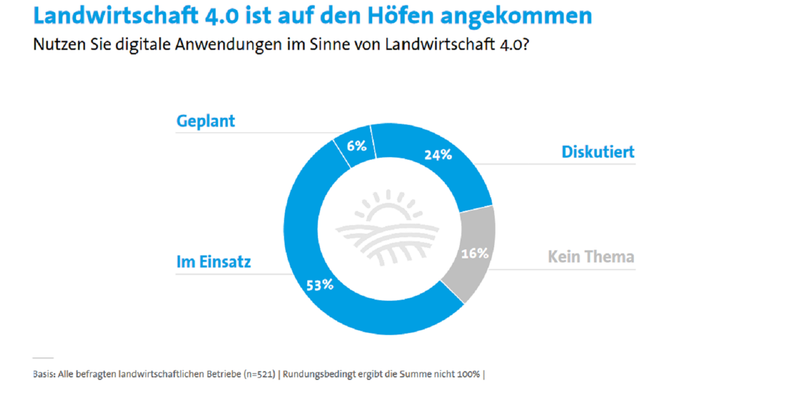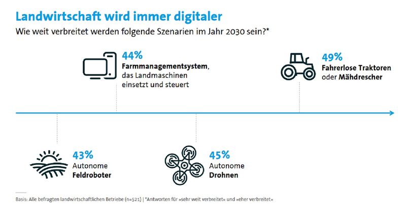 - Jede zweite Landwirt:in setzt inzwischen auf digitale Technologien wie Smart und Precision Farming zur Unterstützung seiner Arbeit; 90 % der Landwirt:innen halten dies für den richtigen Weg.