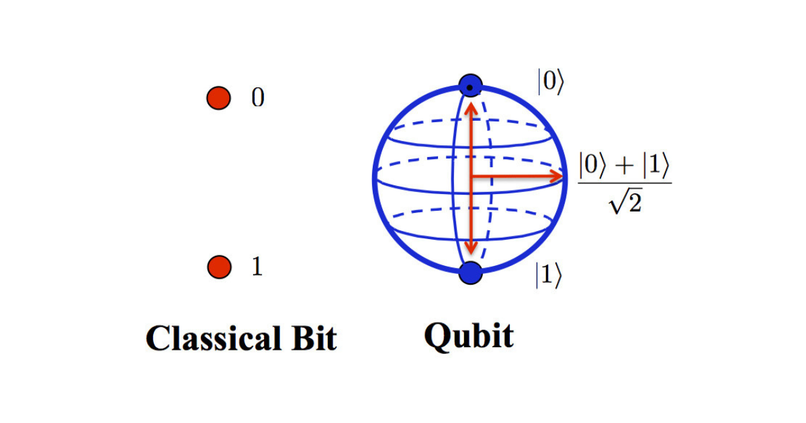 Du kannst es Dir wie eine Münze vorstellen. Stellt sie ein Bit dar, liegt entweder die Seite mit der Zahl oben oder die Kopfseite. Stellt sie ein Qubit dar, rotiert sie und dreht sich schnell um sich selbst. In diesem Zustand kannst Du nicht sagen, ob Zahl oder Kopf oben ist. Erst wenn Du den Vorgang stoppst und den Ausgang misst, liegt ein eindeutiges Ergebnis vor.
