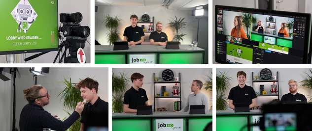 Wir sind unfassbar happy über das positive Feedback, denn nicht nur unser Dev-Team hat fleißig in die Tasten gehauen. Alle aus unserem Team mussten in eine neue Rolle schlüpfen. So wurde aus der SEO-Expertin eine Regisseurin, aus Key Account Managern Producer oder Speaker Operator, aus Marketing Specialists Moderator:innen und aus unserem Konferenzraum wurde ein Studio für unsere Lobby. Seit 2022 begrüßen wir Euch aus unserem kleinen, aber feinen job I/O-Studio, das wir stetig weiter optimieren.