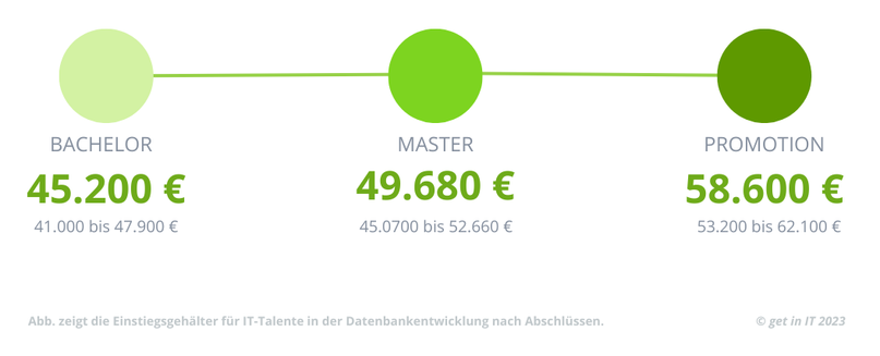 - In der Datenbankentwicklung kannst Du bei Direkteinstieg mit Master in der Tasche ein durchschnittliches Jahresgehalt von 57.100 € verdienen.