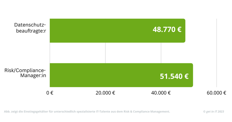 Wie gesagt: Weil eine gewisse Erfahrung hier wichtig ist, ist Risk & Compliance Management kein klassischer Einstiegsberuf. Oft beginnt Deine Karriere mit einer Anstellung als Datenschutzbeauftragte:r. Das bringt Dir um die 48.800 € ein.