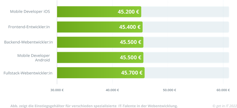 - Bist Du als Fullstack-Entwickler:in sowohl in Frontend- als auch in Backend-Entwicklung bewandert, kannst Du sogar mit 48.600 € starten.