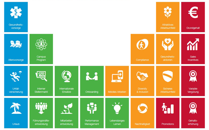 BASF bietet mehr als nur Entgelt. Unser Gesamtangebot umfasst eine Vielzahl unterschiedlicher Elemente, die es dir in jeder Lebensphase ermöglichen, dein Bestes zu geben. Das nennen wir you@BASF. Wir haben vier global gültige Kategorien definiert, um dir einen besseren Überblick über unser Gesamtangebot zu geben. Stöbere in unserer Periodentafel, um zu erfahren, was BASF dir bietet: attraktives Entgelt, umfassende Zusatzleistungen, lebenslange Lern- und Entwicklungsmöglichkeiten sowie ein teamorientiertes, verlässliches und sicheres Arbeitsumfeld. Im Rahmen dieser vier Kategorien analysieren und optimieren wir unser Gesamtangebot weltweit fortlaufend. Dieser Ansatz ermöglicht es uns, unseren Mitarbeitenden den richtigen Mix aus global einheitlichen und lokal angepassten Angeboten zu bieten. So erhöhen wir unsere Attraktivität als Unternehmen sowohl als „Global Player“ als auch als lokaler Arbeitgeber.
