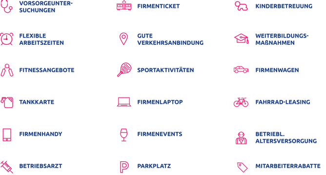 Die Benefits sind teilweise abhängig von Aufgabe und Standort.