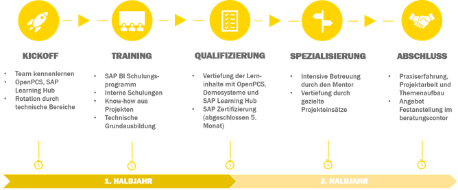 Das Traineeprogramm ist für die Dauer von zwölf Monaten ausgelegt. Folgende Stufen werden durchlaufen.